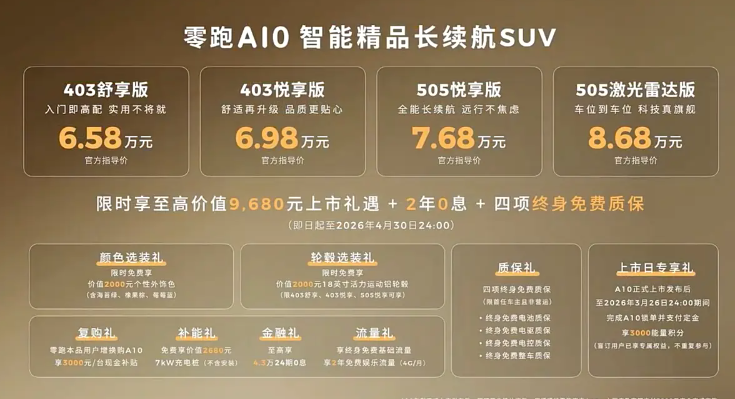 - 零跑A10正式上市,8万多买505km续航和激光雷达