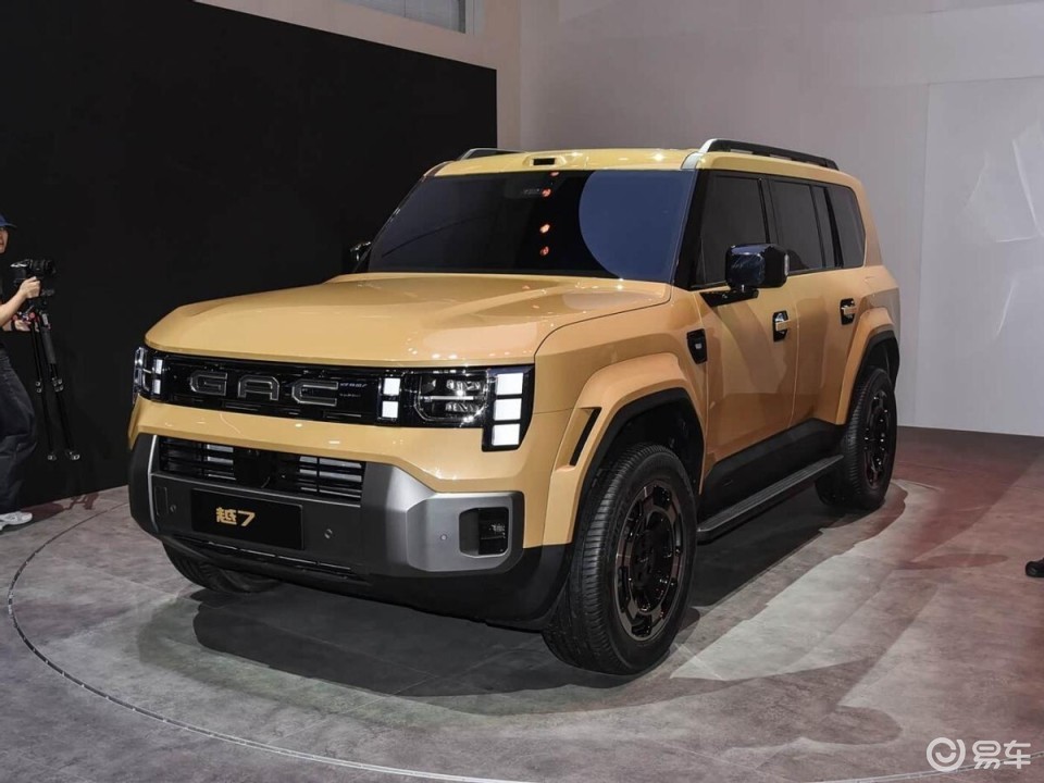 从外观设计来看,越7跳出了传祺家族原有的设计风格,并采用了时下流行的方盒子车身轮廓,整车线条硬朗平直,配合宽体轮眉与AT专业越野轮胎,传递出较为纯粹的硬派越野气息。前脸采用封闭式格栅设计,搭配纵向排列的方块式日间行车灯和八边形全景相控前大灯,内部的相控阵结构兼顾了力量感与科技感。