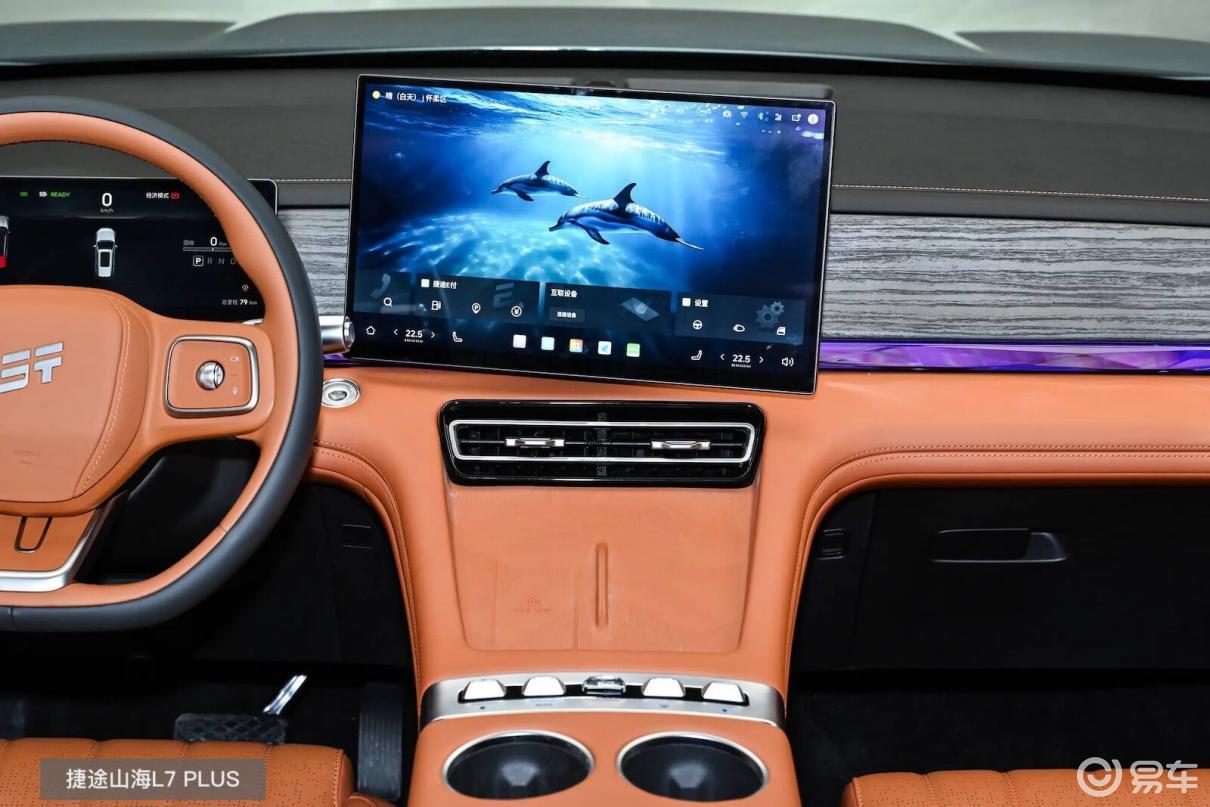 其中,山海L7 PLUS有尺寸略大一些15.6英寸向日葵屏,能够根据语音识别方向来提供左右10°的智能偏转,让观看与交互更直观;而且车机还专门设计了灵动岛与副驾负一屏,并接入了灵捷AI语音大模型,无论是多人用车,还是更复杂的指令它都能全面支持。
